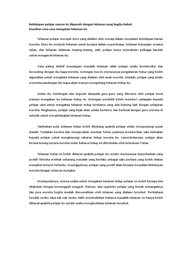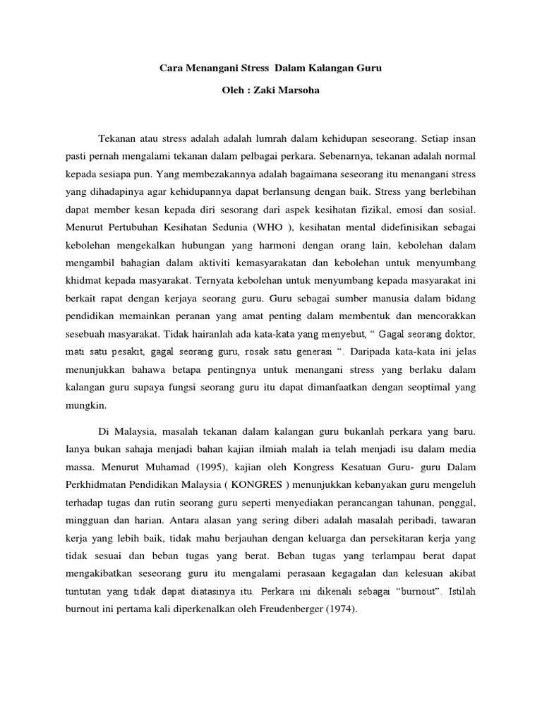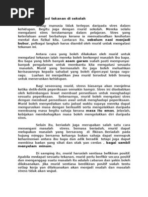 Di dalam ketidak jelasan itulah banyak di antara mereka yang mengalami stress dan depresi saat menuntut ilmu di sekolah dan di kampus. Cara lain untuk mengatasi stres kerja adalah dengan 'me time'. Jangan jadi makin stress karenanya. Pengurusan stres kerja kursus 1 tajuk : Anda akan merasa jauh lebih tenang dalam menghadapi hari anda, serta dapat mengurangi stress.