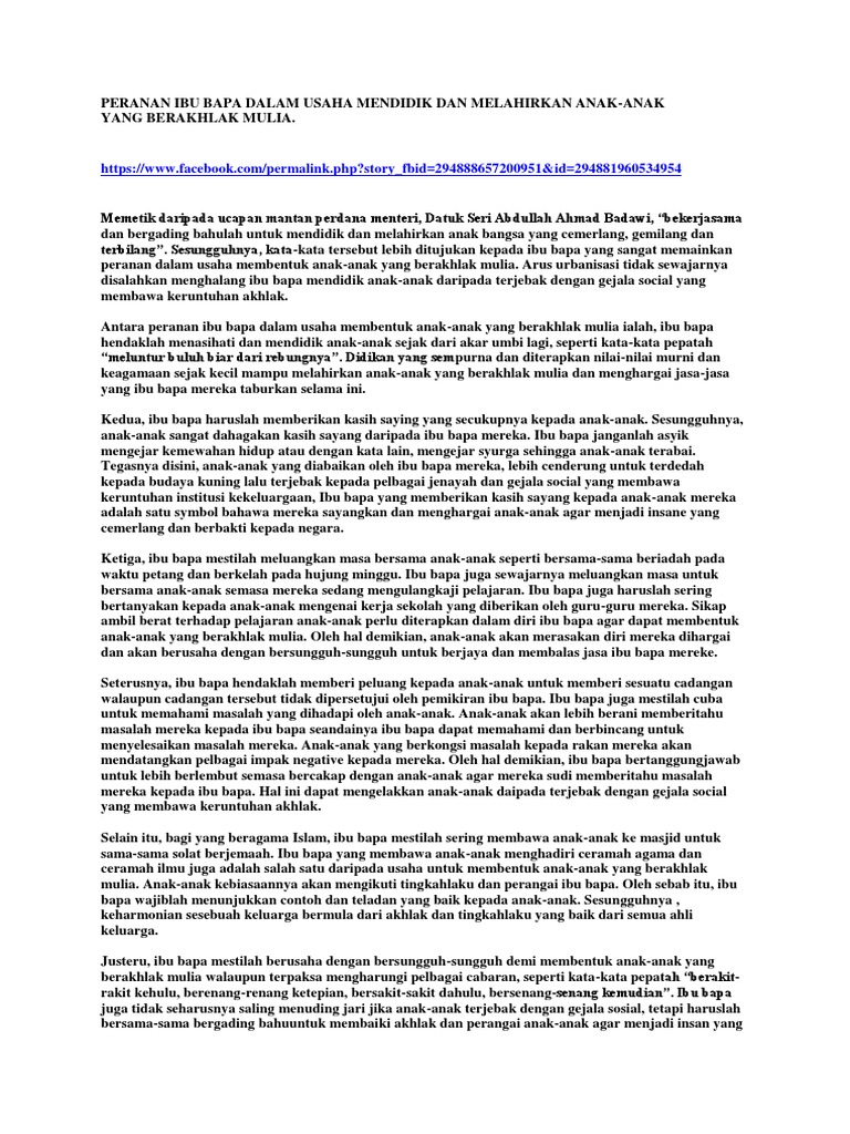 Peranan Ibu Bapa Dalam Pembentukan Keluarga Bahagia from imgv2-2-f.scribdassets.com Oleh itu, ibu dan bapa memainkan peranan penting bagi memupuk amalan membaca. Artikel ini membincangkan peranan ibu bapa dalam pelbagai. Postingan populer dari blog ini. Mereka memainkan peranan yang amat penting dalam pembentukan masyarakat dan tamadun manusia masa hadapan. 'peranan karawari dalam proses pendewasaan pada masyarakat suku sentani, jayapura' 'peranan pesta babi dalam kehidupan sosial ekonomi pada masyarakat muyu'. Peranan ibu bapa dalam membesarkan anak bermula sebaik sahaja si kecil dilahirkan. Sudah seminggu sandi menjadi suamiku, dan jujur saja aku sangat menikmati kehidupan malamku selama seminggu ini. Masih ingat lagikah anda dengan ungkapan kasih ibu membawa ke syurga.